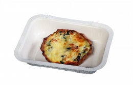 Мука нутовая, куриная грудка (филе) с/м, молоко, сыр полутвердый 17% жирности, лук репчатый, яйцо куриное, оливковое масло, натуральный заменитель сахара эритрит, перец черный молотый, соль пищевая.