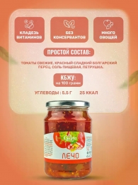 Лечо — это вкусное и полноценное блюдо, которое можно подавать как отдельно, так и в качестве гарнира. Этот продукт широко используется в кулинарии как один из основных ингредиентов для мясных, рыбных блюд и соусов. Летние спелые овощи возбуждают аппетит и делают каждое блюдо уникальным! Густое, натуральное и низкокалорийное лечо – отличный выбор для всей семьи, включая вегетарианцев. Изготовлено из экологически чистых овощей, выращенных в предгорьях Армении. Продукт не содержит консервантов и усилителей вкуса, сохраняя максимальную пользу для вашего здоровья!