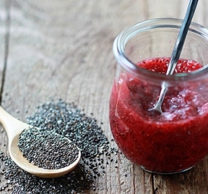 Малину оставьте в холодильнике на ночь, чтобы она разморозилась. Затем оставьте при комнатной температуре на 1-2 часа. Семена чиа залейте водой и дайте им набухнуть, это займет 10-15 минут. Взбейте в блендере малину, семена чиа и подсластитель. Перелейте в контейнер и храните в холодильнике.