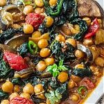 Нут с баклажанами и шпинатом в соусе карри в мультиварке