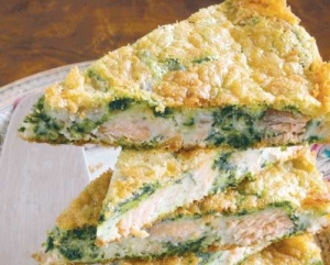 Мелко нарезать куриное филе и измельчить чеснок. Все перемешать. Выливаем тесто в силиконовую форму или форму для выпечки (форму смазать оливковым маслом).