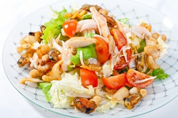 Салат из морского коктейля и овощей