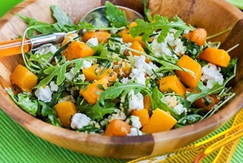 Нарежьте авакадо и тыкву ломтиками. В миске смешайте все ингредиенты. В маленькой миске смешайте соль, перец, лимонный сок и горчицу. Вылейте заправку в салат.