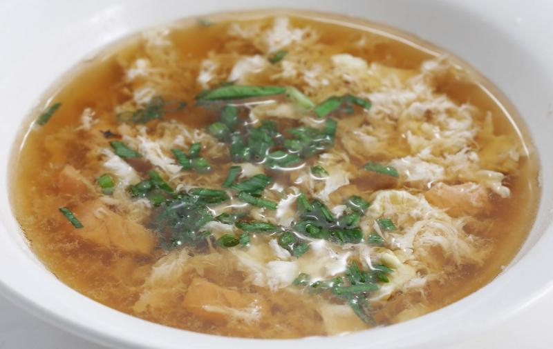 Тофу режем кубиками и добавляем к луку, жарим до золотистого цвета Готовую рыбу вынимаем из бульона, немного охлаждаем и разбираем на кусочки, очищая от костей. Бульон процеживаем, добавляем лук и тофу, солим, добавляем приправы и кусочки рыбы и снова ставим на небольшой огонь. Яйцо разбиваем в стакан, взбиваем и при постоянном помешивании, выливаем тонкой струйкой в суп. Варим еще минуту и выключаем огонь.