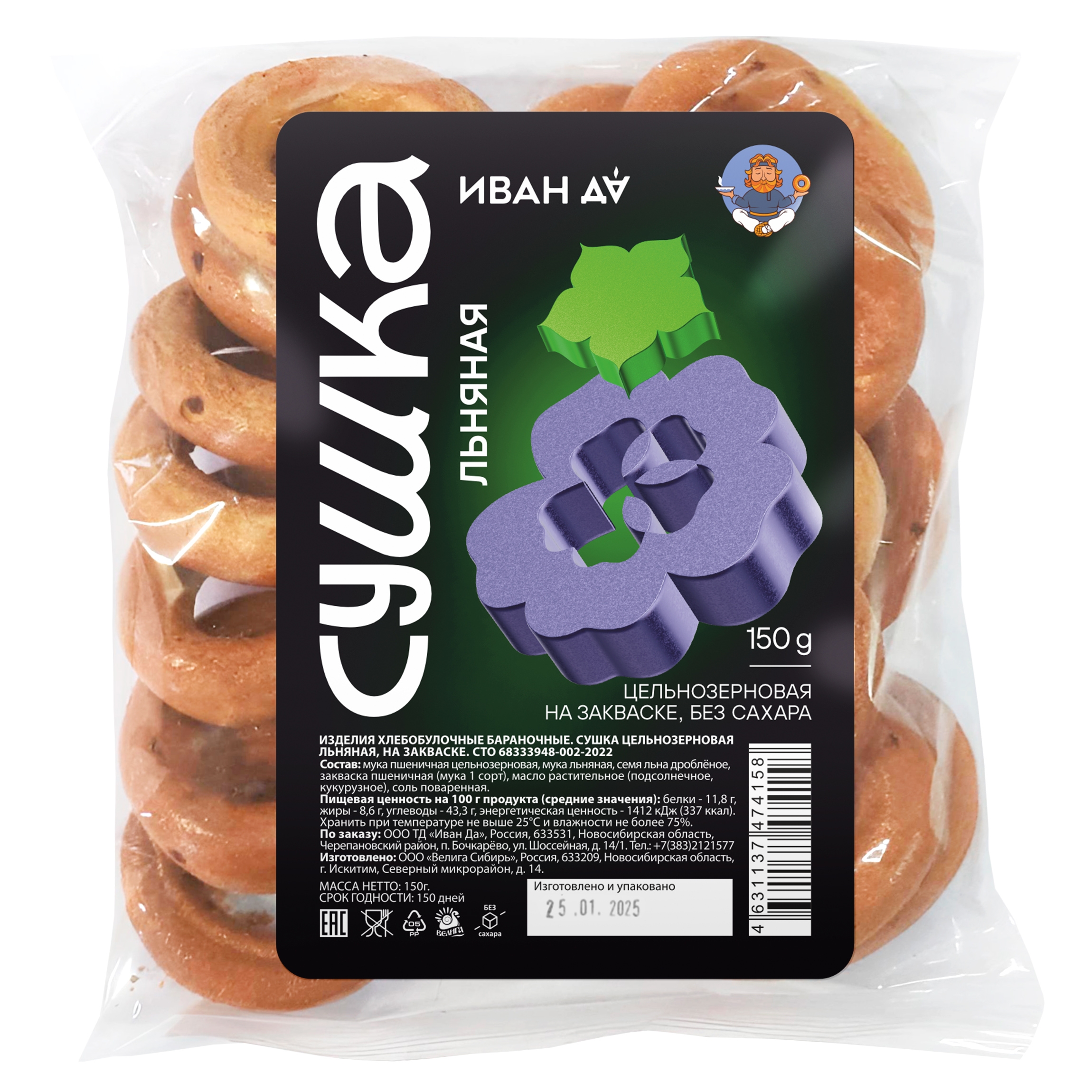 Сушка льняная цельнозерновая на закваске, 150 гр