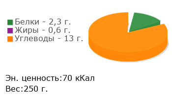 Энергетическая ценность на 100 г продукта: 70 кКал.