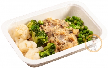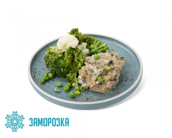 Шампиньоны свежие, Капуста цветная с/м, киноа, Капуста брокколи с/м, горошек зеленый с/м, Лук репчатый, Молоко, Масло оливковое, Чеснок сушеный, соль, Петрушка зелень, Кинза , смесь специй для овощей Гарам-масала (черный перец молотый, кардамон зеленого и коричневого сортов молотый, гвоздика молотая, мускатный орех молотый, тмин молотый, куркума молотая, корица молотая), камедь рожкового дерева.