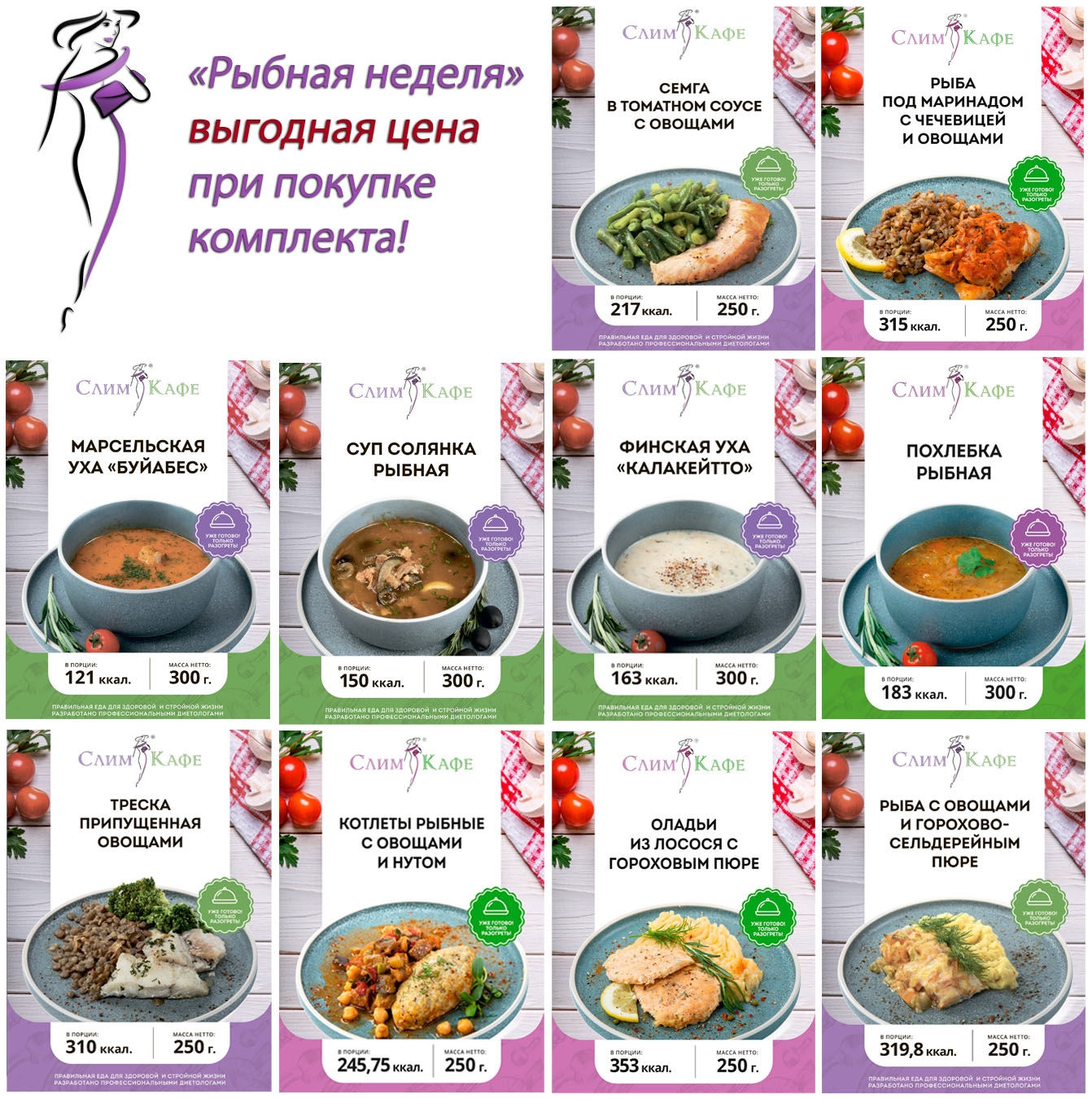 Любите рыбу? Тогда Вы нашли супер предложение! Специально для Вас мы сформировали набор блюд, которые в своем составе содержат рыбу. Этого набора Вам хватит для полноценного питания на целую неделю, ведь в него входит 7 сытных супов и 7 аппетитных ланчей.