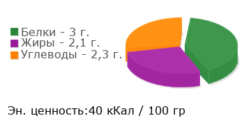 Энергетическая ценность на 100 г продукта: 40 кКал.