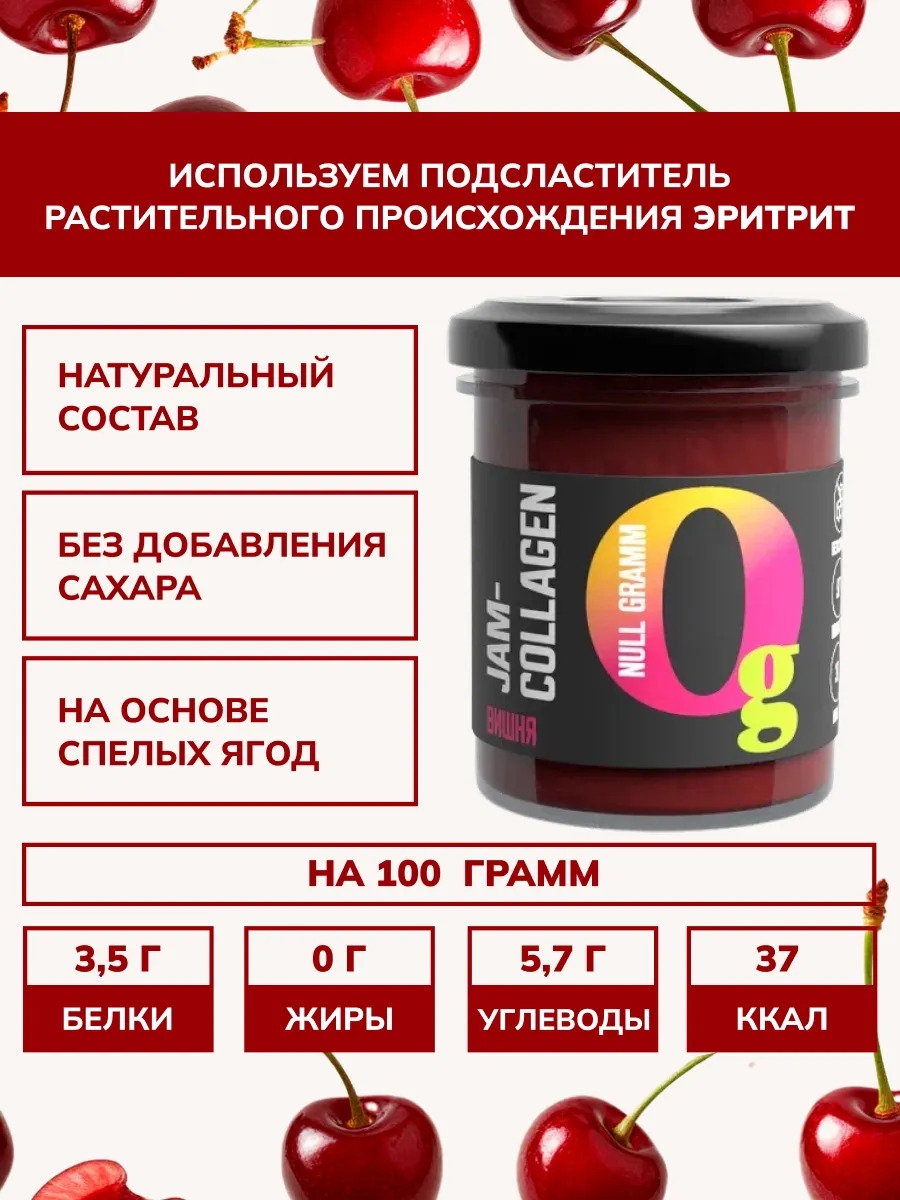 Наслаждайтесь вкусом без компромиссов: Джем "Ноль грамм" вишня и коллагеном!
