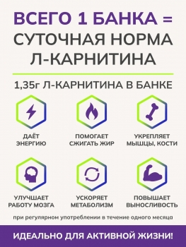 С добавлением L-карнитина! Этот полезный компонент поможет вашему организму эффективнее использовать энергию, поддерживая ваш активный образ жизни.