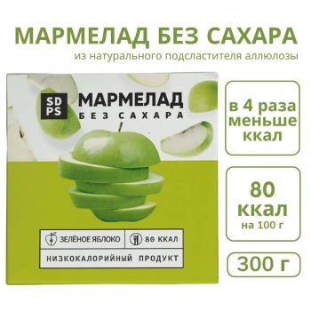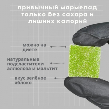 Мармелад низкокалорийный "Зеленое яблоко" без сахара, 300 гр