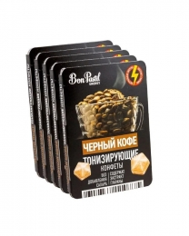 Конфеты Bon Pastil ENERGY Черный Кофе разработаны при содействии ведущих ученых диетологов ГБОУ ДПО РМАПО и ФГБНУ НИИ Питания. Уникальная рецептура: тонизирующие конфеты на основе сублимированного кофе с добавлением экстракта гуараны - природного энергетика, без добавления сахара. Передовая технология - метод холодного прессования, обеспечивает сохранение максимального количества полезных веществ. Подходят для здорового, диетического питания, для веганов, разрешены к употреблению при сахарном диабете