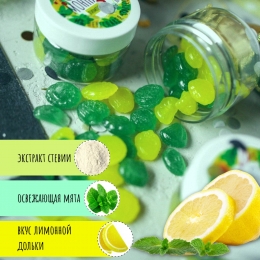 Освежающие и кисленькие конфетки с натуральным составом со вкусом мяты и лимончика!