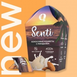 Заказать100 рубКонфетки кокосовые с миндалем в шоколадной глазури без сахара "Senti", 45 грМасса нетто: 45 г
