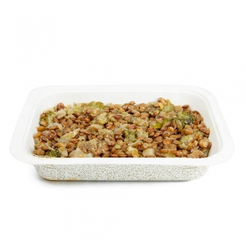 Чечевица, капуста белокочанная, лук репчатый, укроп зелень, отруби пшеничные, масло оливковое, капуста брокколи с/м, приправа «Асафетида».
